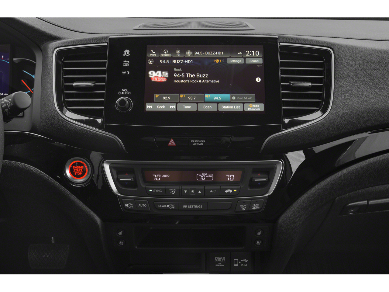 - Radio: 540-Watt Premium Audio System w/10 Speakers -inc: subwoofer, 8" display audio w/high-resolution electrostatic touch-screen and customizable feature settings, Bluetooth® HandsFreeLink, Bluetooth® streaming audio, MP3/auxiliary input jack in center console, Radio Data System (RDS), Speed-Sensitive Volume Compensation (SVC), (3) 2.5-amp USB charging ports, 12-volt power outlets in front console, center console and cargo area, HondaLink, Apple CarPlay integration, Android Auto integration, CabinControl remote compatibility, SMS text message function, SiriusXM radio, HD Radio, mobile hotspot capability (requires AT&T data plan), 2.5-amp USB smartphone/audio interface port in front console, Honda Satellite-Linked Navigation System w/voice recognition and Honda HD digital traffic, 115-volt power outlet, HondaLink subscription services and wireless phone charger SiriusXM services require a subscription after any trial period. Honda HD digital traffic service is only available in the United States, except Alaska. Honda wireless phone charger is compatible with both Qi and Powermat wireless charging standards. Check with your device's manufacturer for wireless capability.