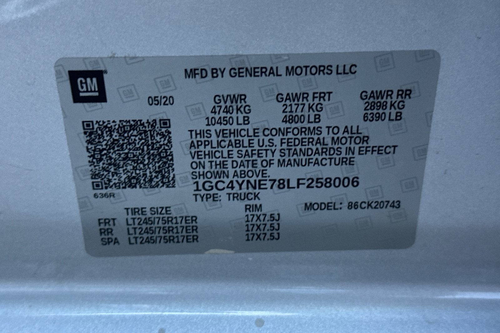 - Tire, spare LT245/75R17E all-season, blackwall (Included and only available with (QHQ) LT245/75R17E all-season, blackwall tires with (E63) Durabed, pickup bed. Available to order when (ZW9) pickup bed delete and (QHQ) LT245/75R17E all-season, blackwall tires are ordered)