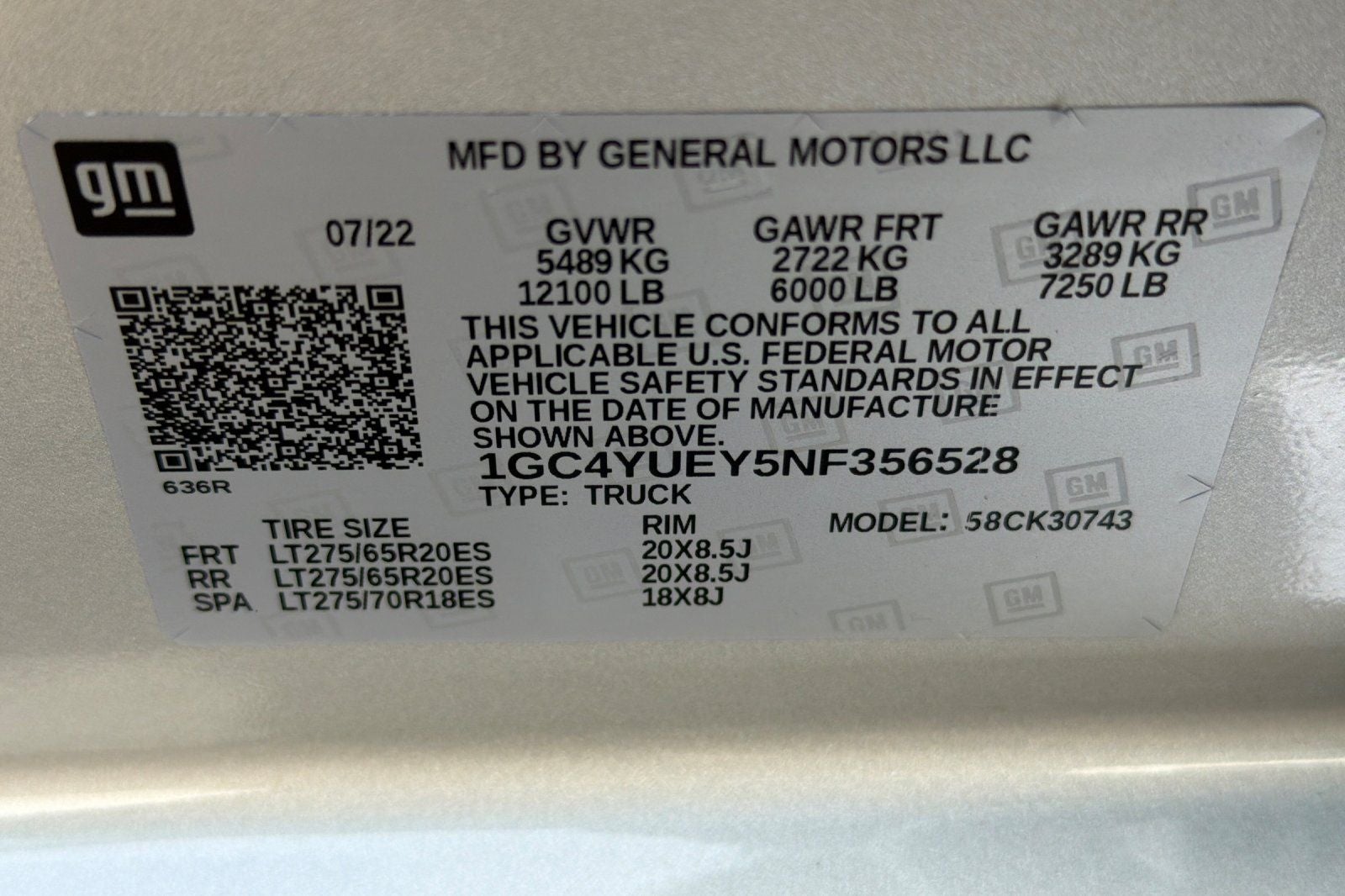 - Tire, spare LT275/70R18 all-terrain, blackwall (Included and only available with (QF6) LT275/70R18E all-terrain, blackwall tires or (QF9) LT275/65R20 all-terrain, blackwall tires with (E63) Durabed, pickup bed single rear wheel models. Available to order when (ZW9) pickup bed delete and (QF6) LT275/70R18E all-terrain, blackwall tires are ordered with single rear wheel models.)