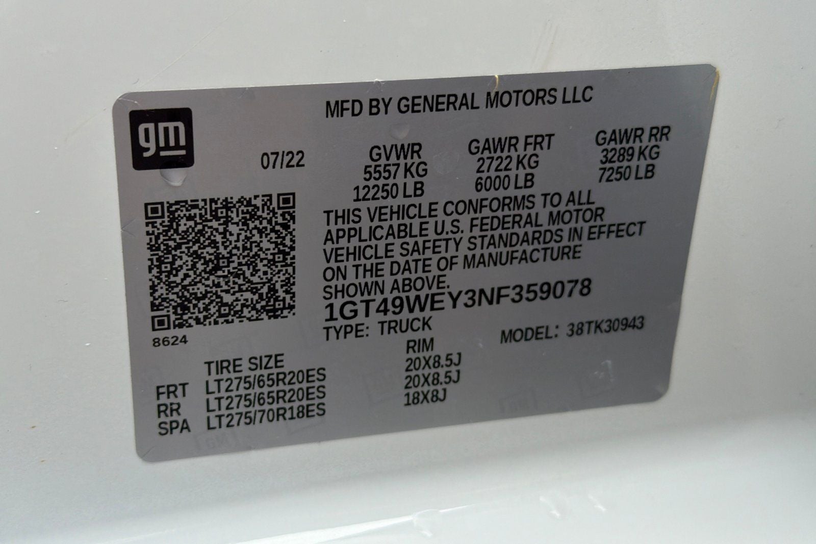 - Tire, spare LT275/70R18 all-terrain, blackwall (Included and only available with (QF9) LT275/65R20 all-terrain, blackwall tires on single rear wheel models.)
